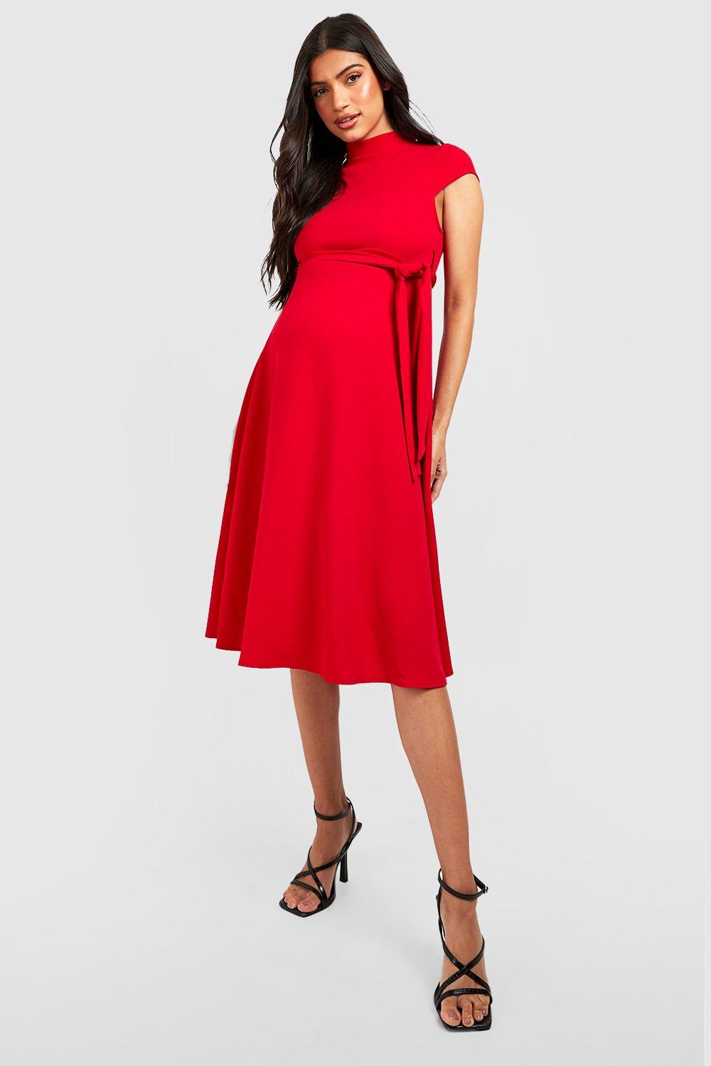 Boohoo maternity dresses uk clearance, Women s Maternity Belted Midi Skater Dress Boohoo UK clearance
