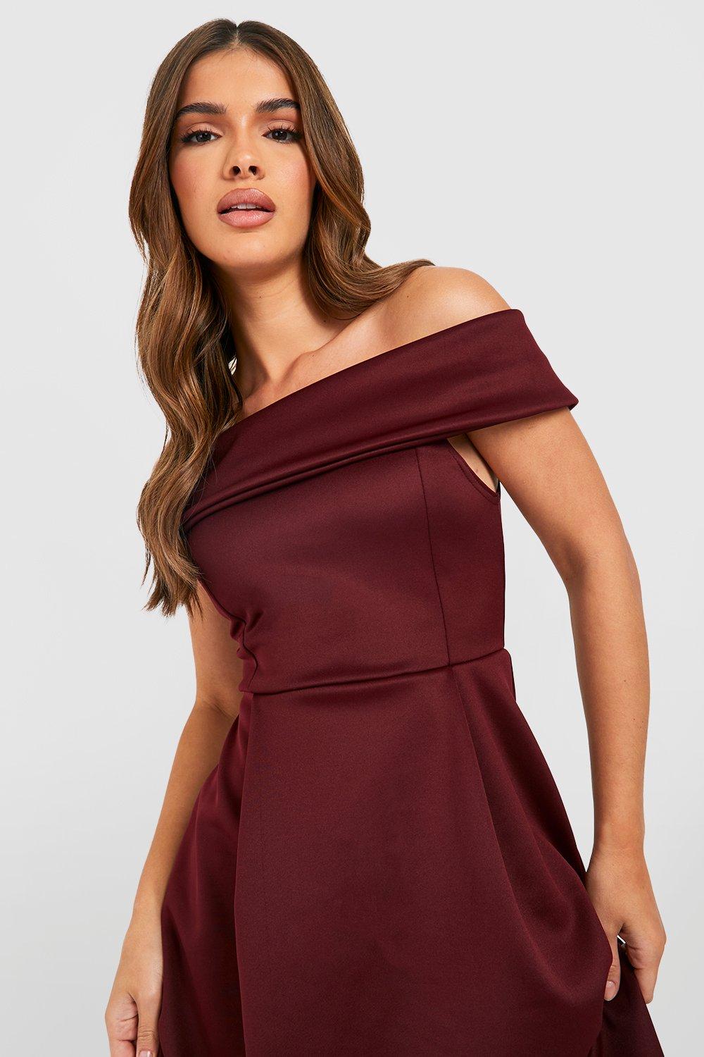 Boohoo off shoulder skater dress clearance, Off The Shoulder Dip Hem Skater Dress boohoo clearance
