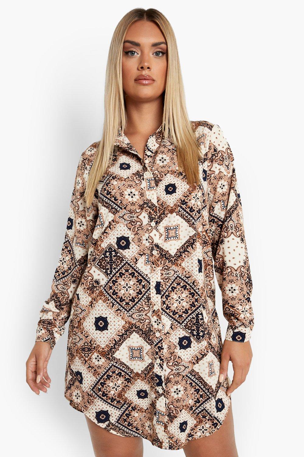 Boohoo paisley clearance, Plus Paisley Satin Shirt Dress boohoo clearance