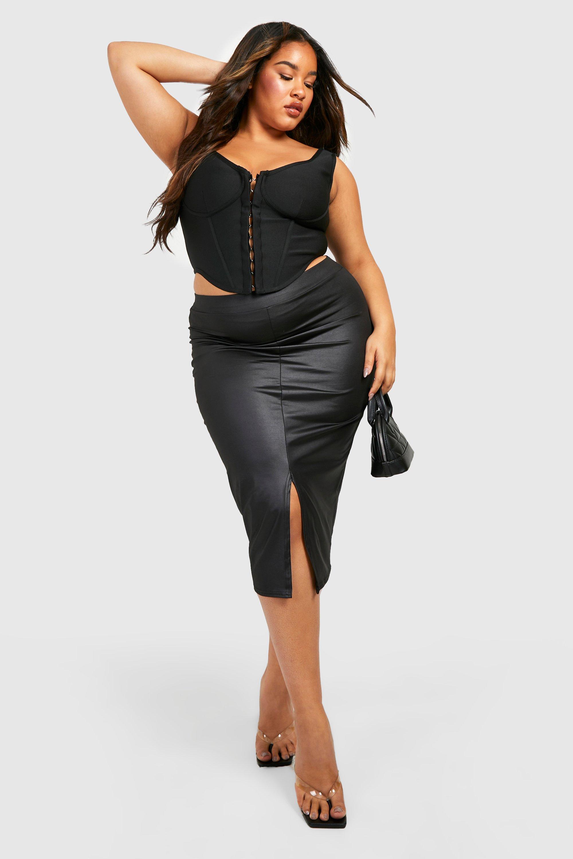 Boohoo plus size leather skirt clearance, Plus Pu Midi Skirt boohoo clearance