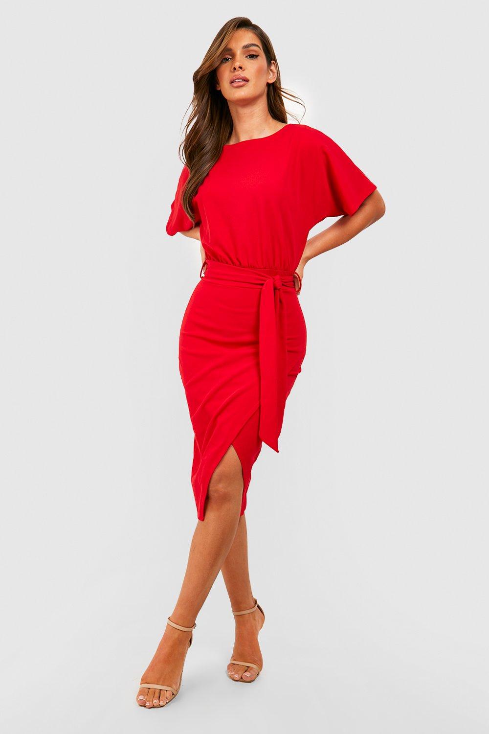 Boohoo red dress midi clearance