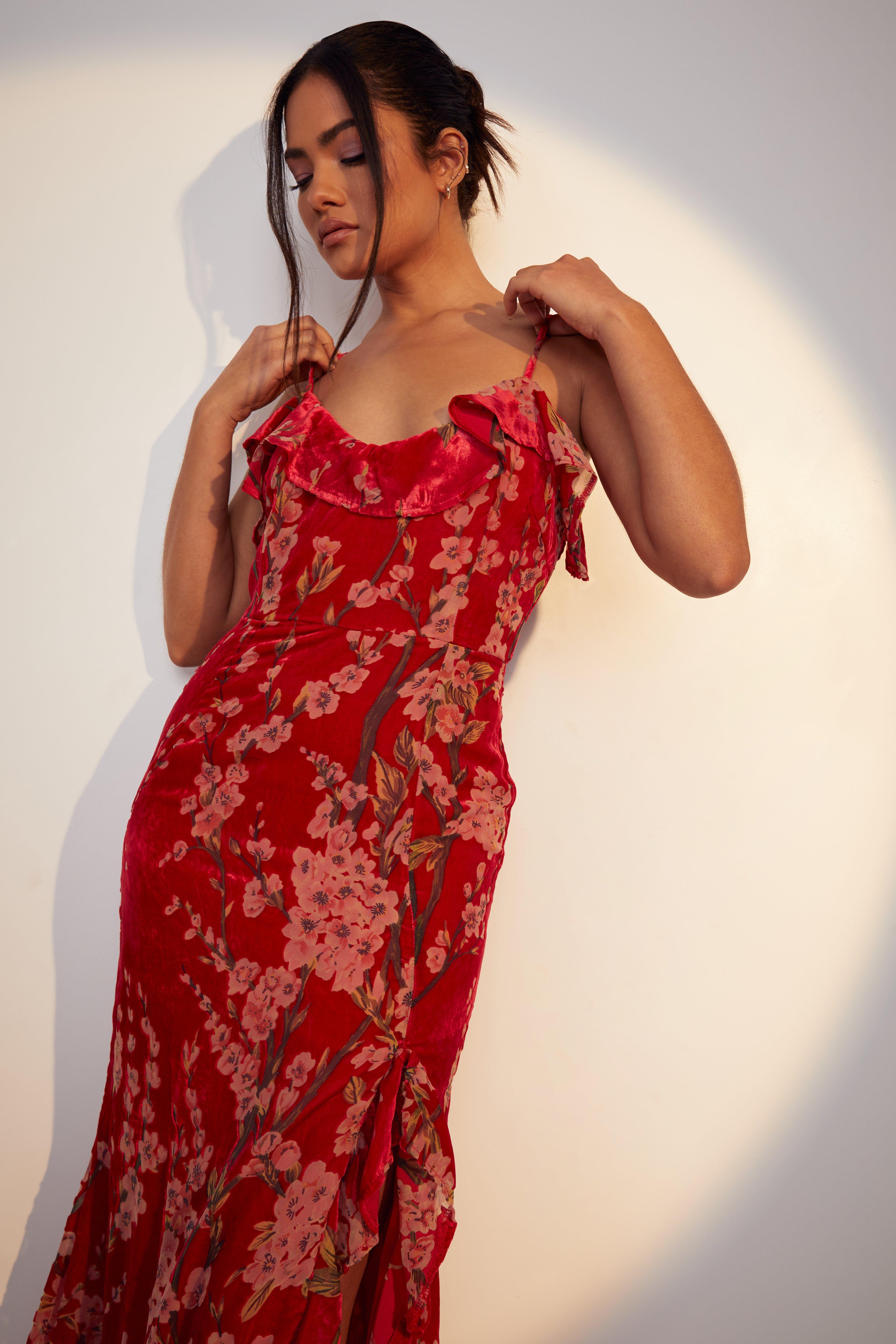 Women s Floral Strappy Frill Detail Maxi Dress Boohoo UK