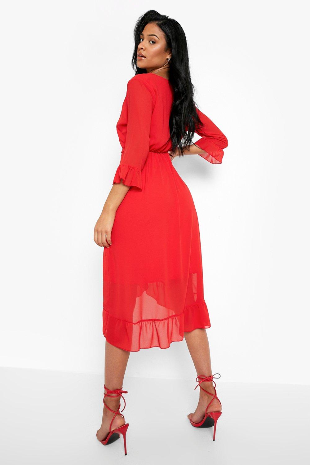 Tall Frill Detail Wrap Chiffon Midi Dress boohoo