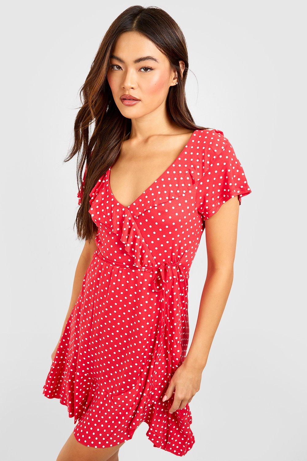 Women s Red Polka Dot Mini Dress Boohoo UK