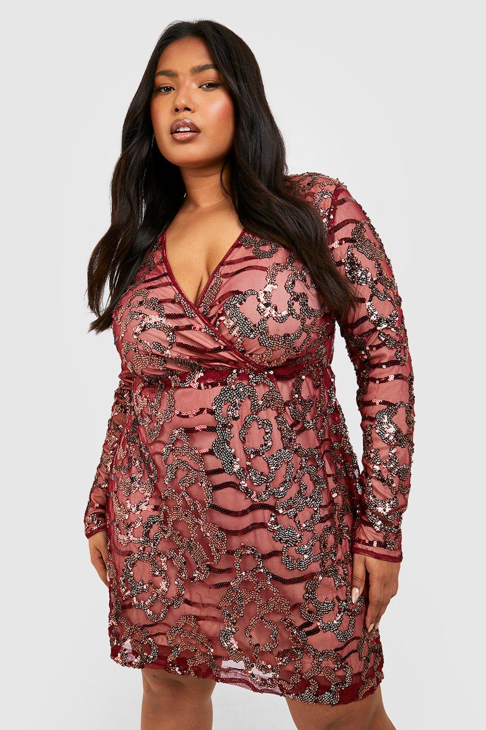 Women s Plus Two Tone Wrap Sequin Dress Boohoo UK