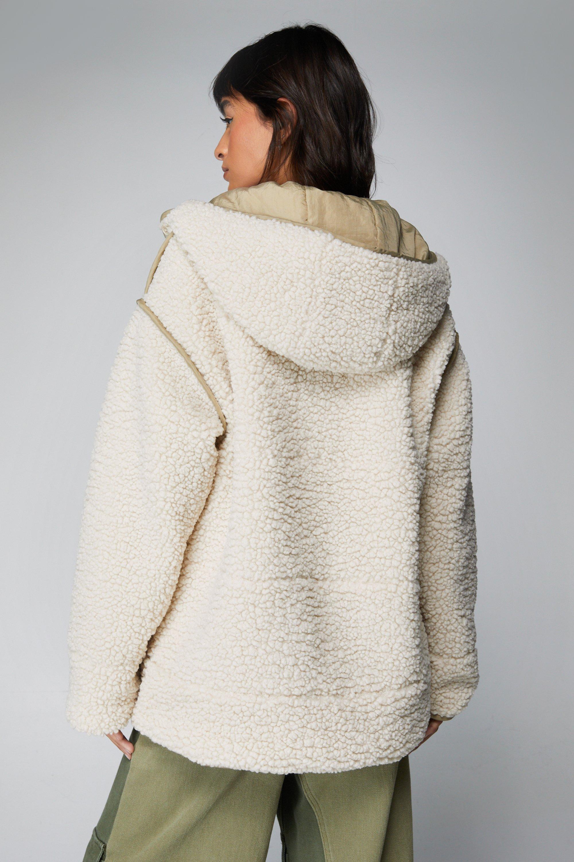 Boohoo sherpa jacket clearance, Teddy Faux Fur Hooded Jacket boohoo clearance