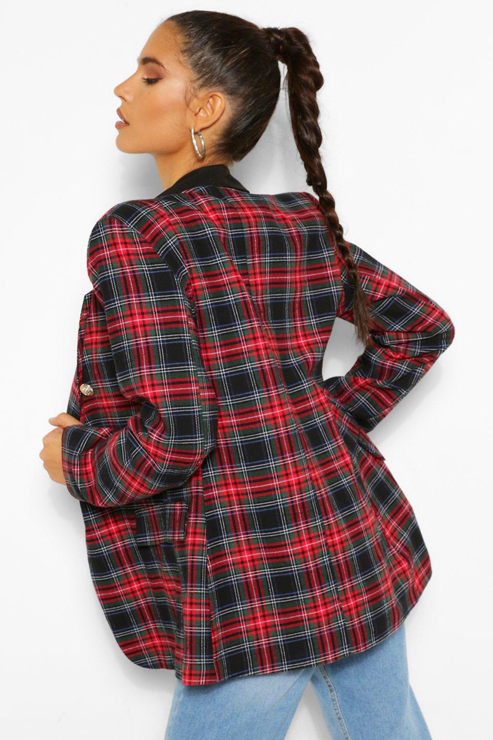 Boohoo tartan blazer clearance, Women s Tailored Contour Checked Blazer Boohoo UK clearance