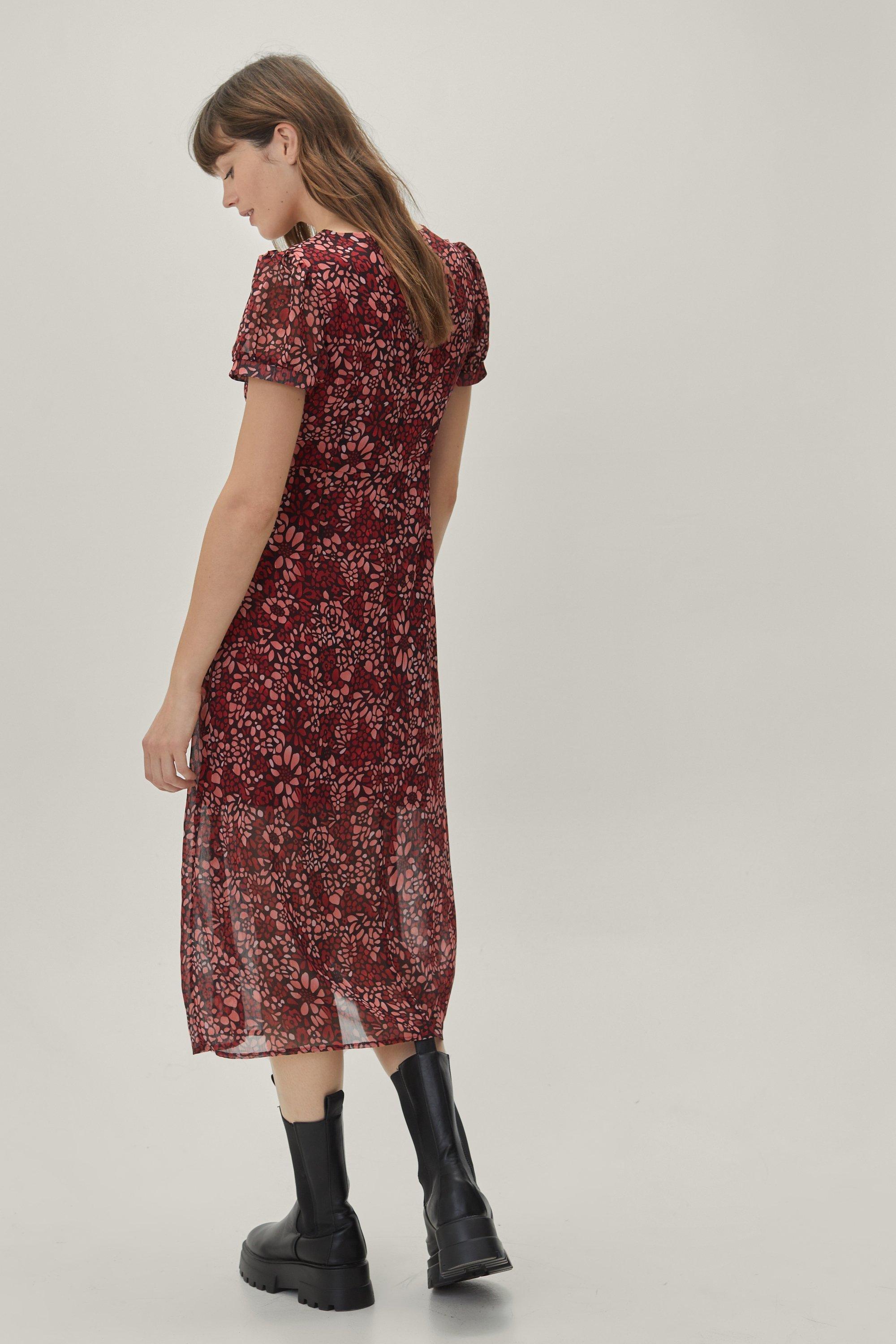 Women s Floral Short Sleeve Midi Tea Dress Boohoo UK