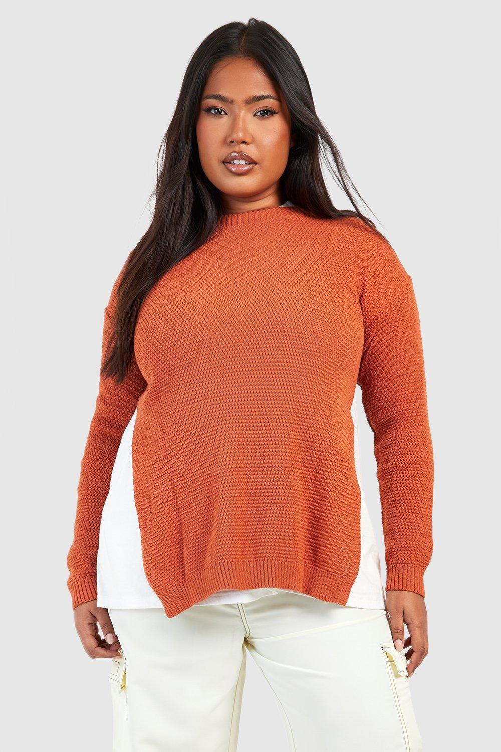 Women s Plus Side Split Moss Stitch Tunic Jumper Boohoo UK