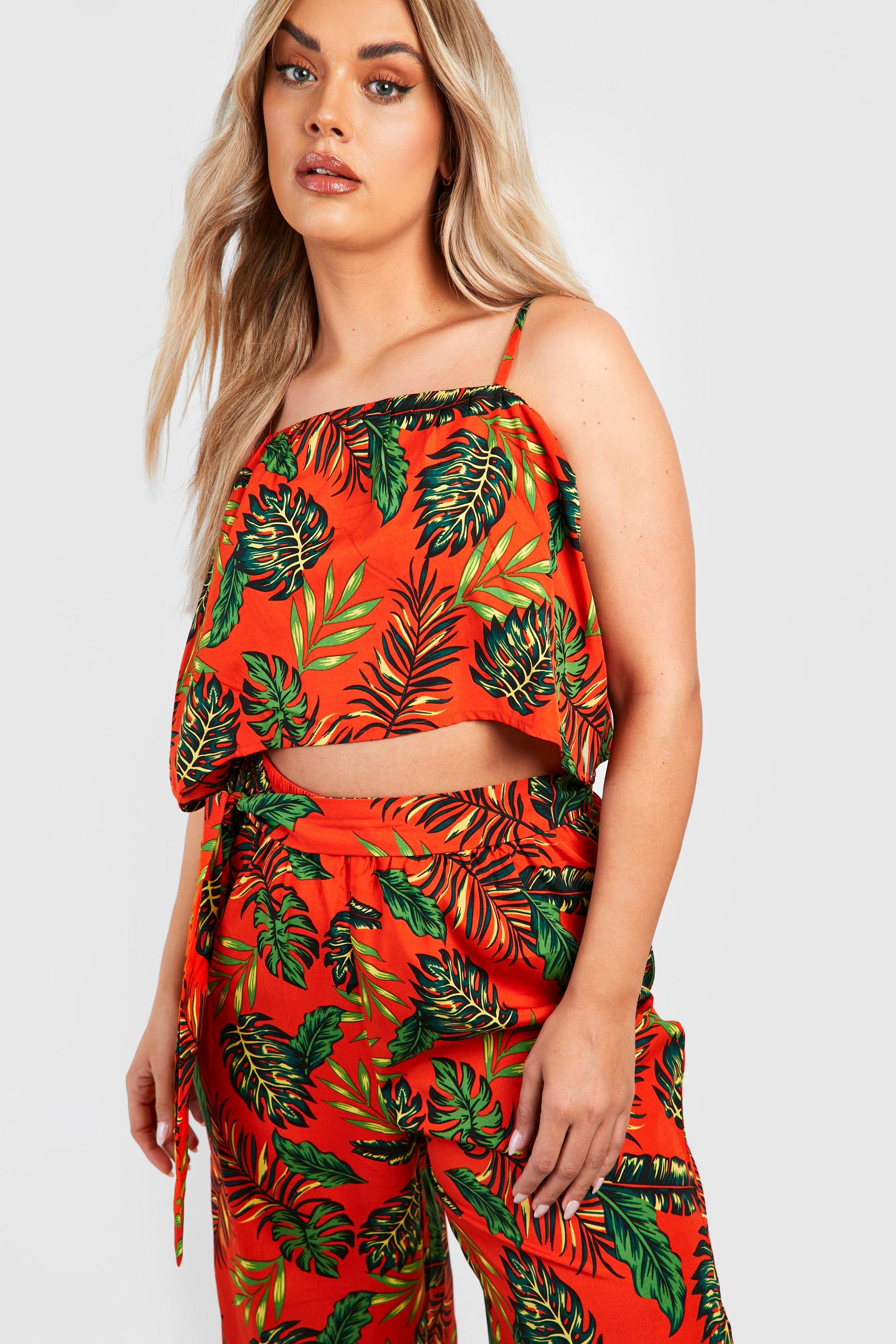 Grande taille Ensemble imprim palmier avec top et pantalon