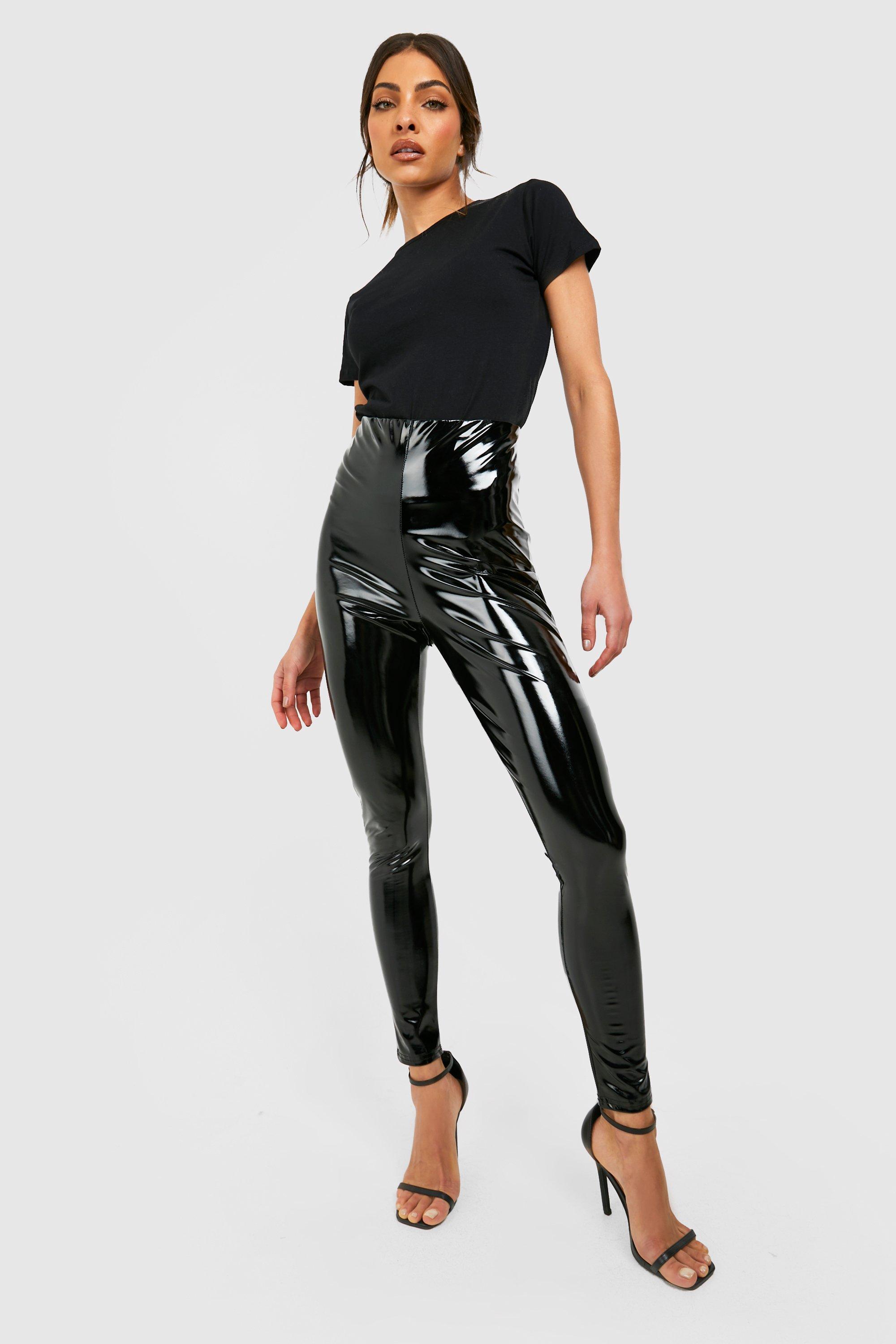 Women s High Waisted Stretch Vinyl Leggings Boohoo UK