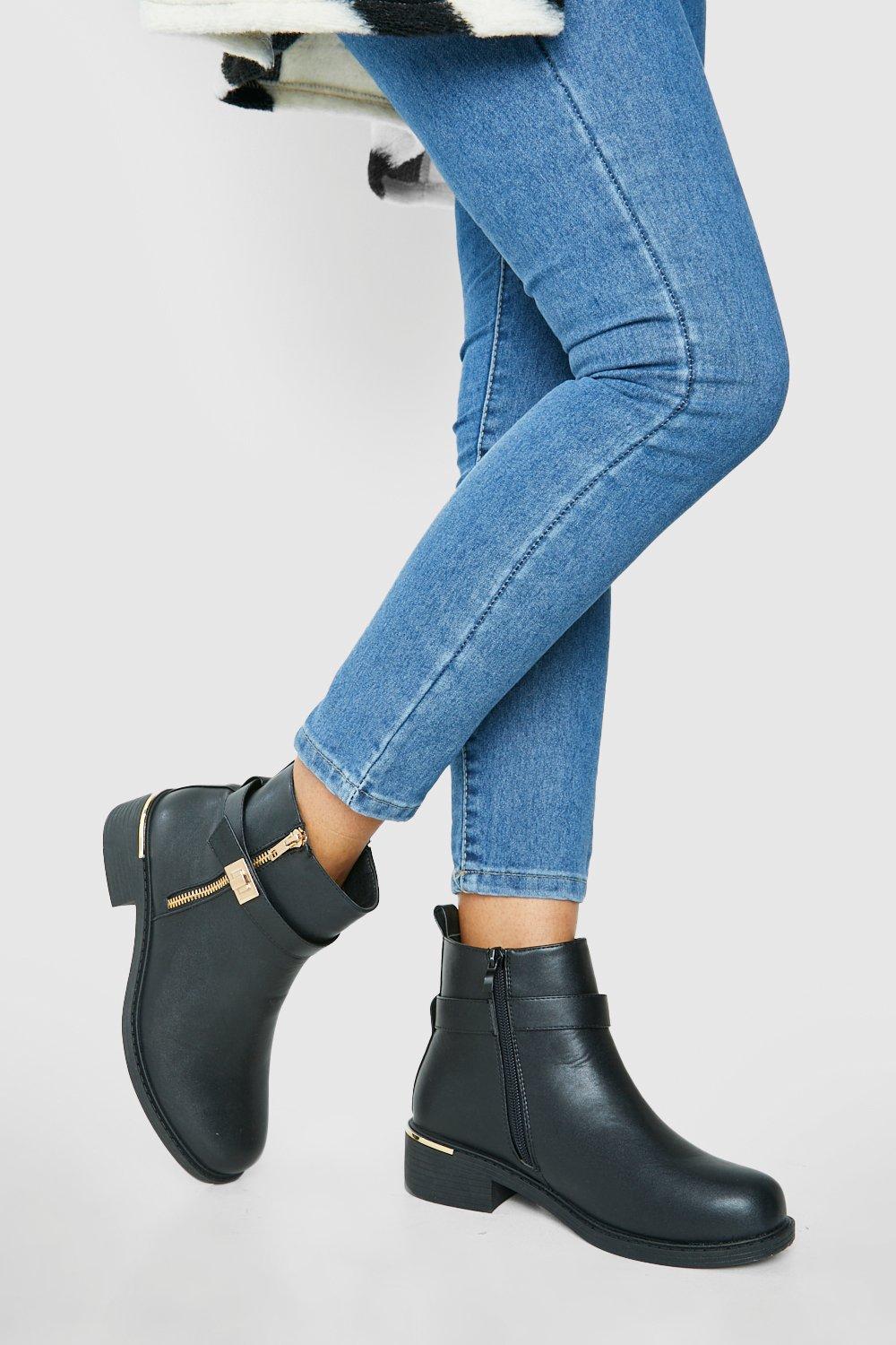 Wide Fit Side Buckle Gold Trim Chelsea Boots boohoo