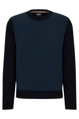 Boss blue jumper clearance, BOSS Crew neck sweater with jacquard woven pattern clearance
