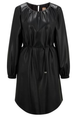BOSS Faux leather long sleeved dress with tie belt