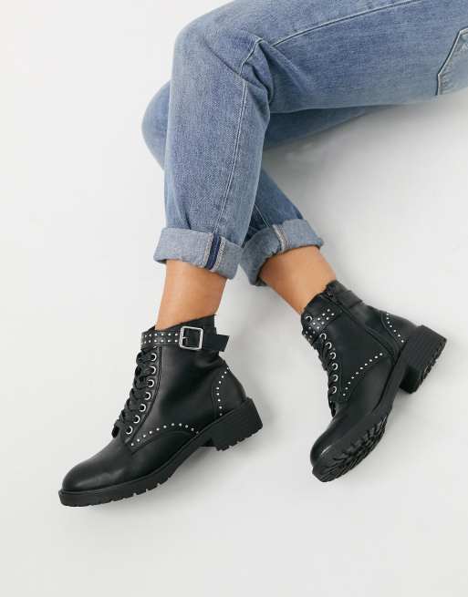 Bottines lacets cloutées clearance, Paire de Bottes clout es lacets Officier en cuir marron Ventes clearance