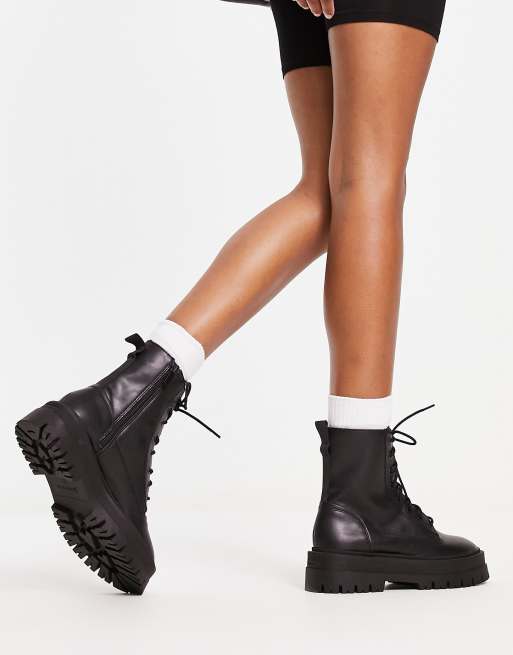 Bottines perles stradivarius clearance, Stradivarius Bottines plates lacets Noir ASOS clearance