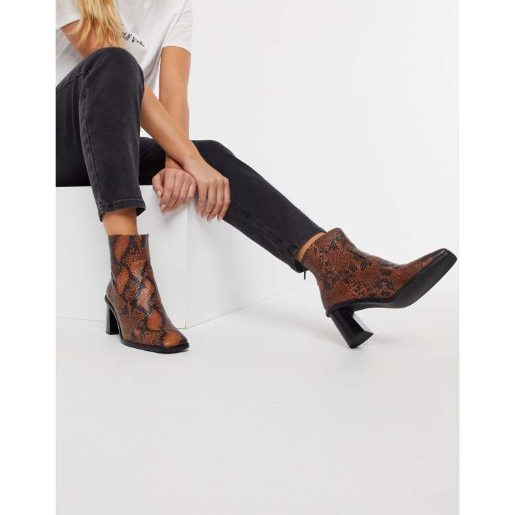 ASOS DESIGN Bottines chelsea talon et bout pointu effet serpent Marron