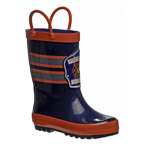 Rugged Bear Boys Firefighter Design Rain Boots With Loops Navy