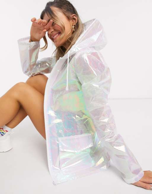 Brave Soul Plus festival hooded rain mac in iridescent white