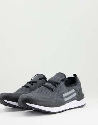 Brave Soul Sneakers With Reflective Side Stripes In Charcoal black