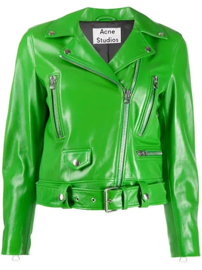 ACNE STUDIOS MOCK Leather Biker Jacket Forest Green Size 34 XS