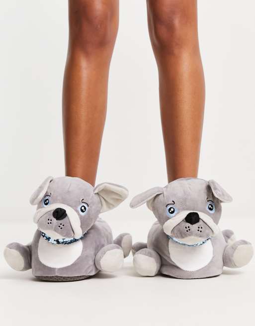 ASOS DESIGN Zanny french bulldog slippers in gray