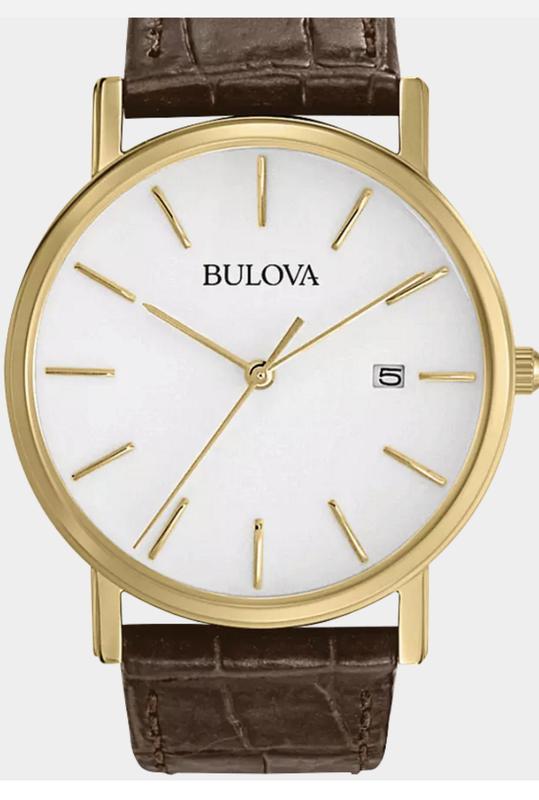 Bulova Ambassador Men s Gold White Dial Brown Classic Watch Bulova