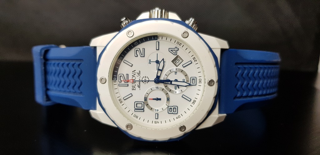 Bulova Marine Star Chronograph White Dial Blue Rubber Men s Watch 98B200