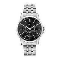 TFX Mens Silver Tone SS Chronograph Watch Black Dial Power Sales