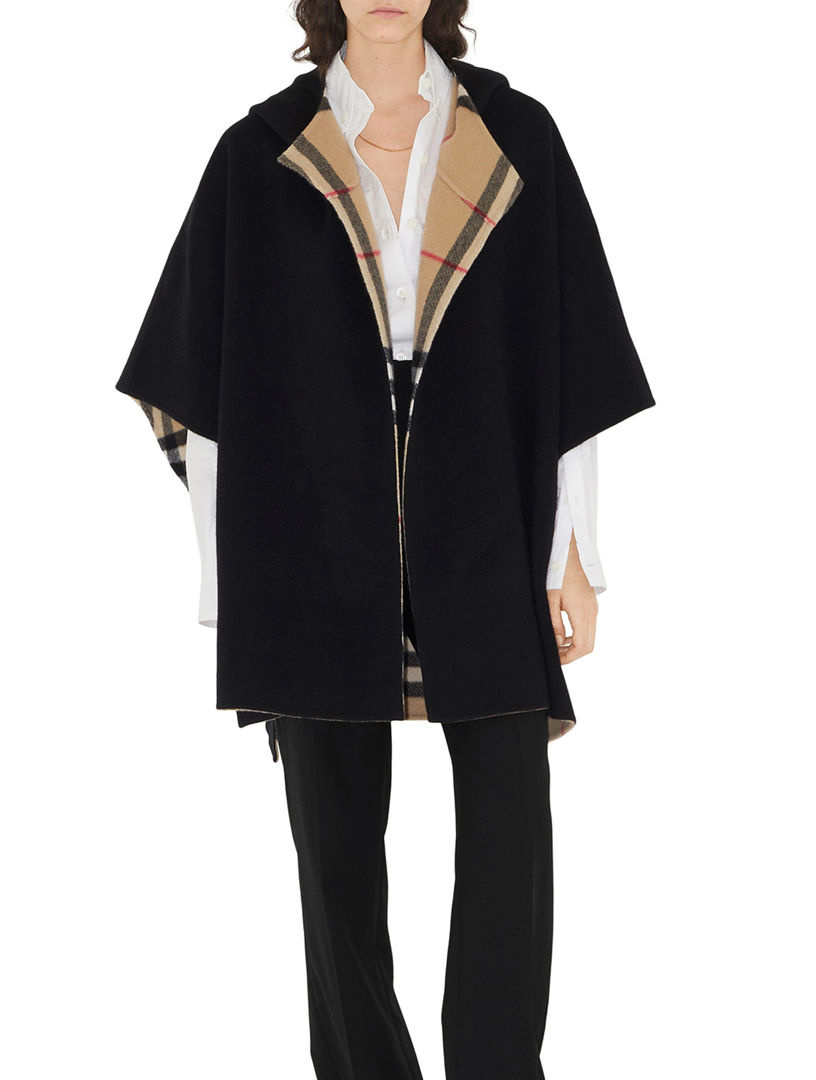 Burberry cape black clearance, BURBERRY Cashmere Reversible Hooded Cape Holt Renfrew clearance
