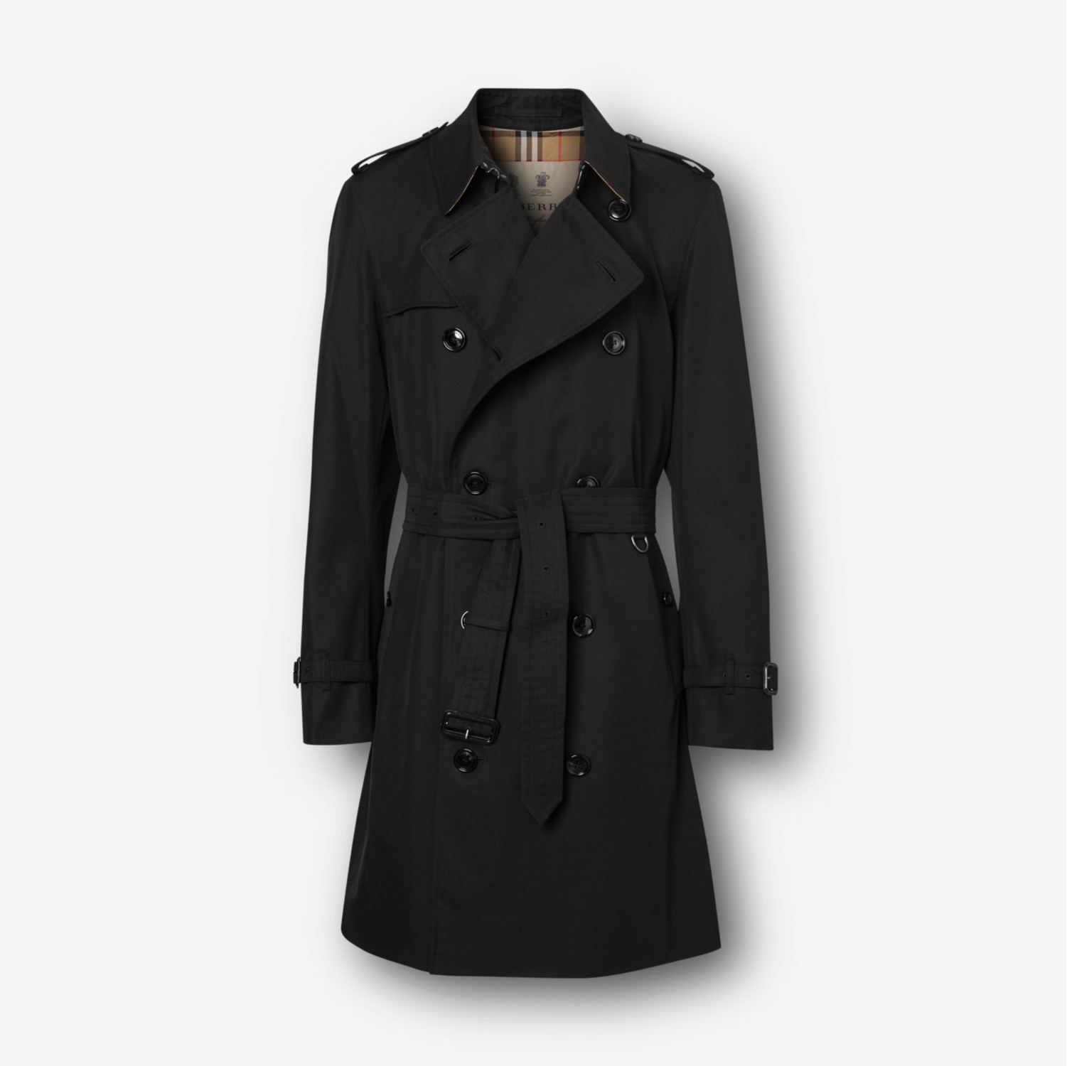 The Mid length Chelsea Heritage Trench Coat in Black Men Cotton Gabardine Burberry Official