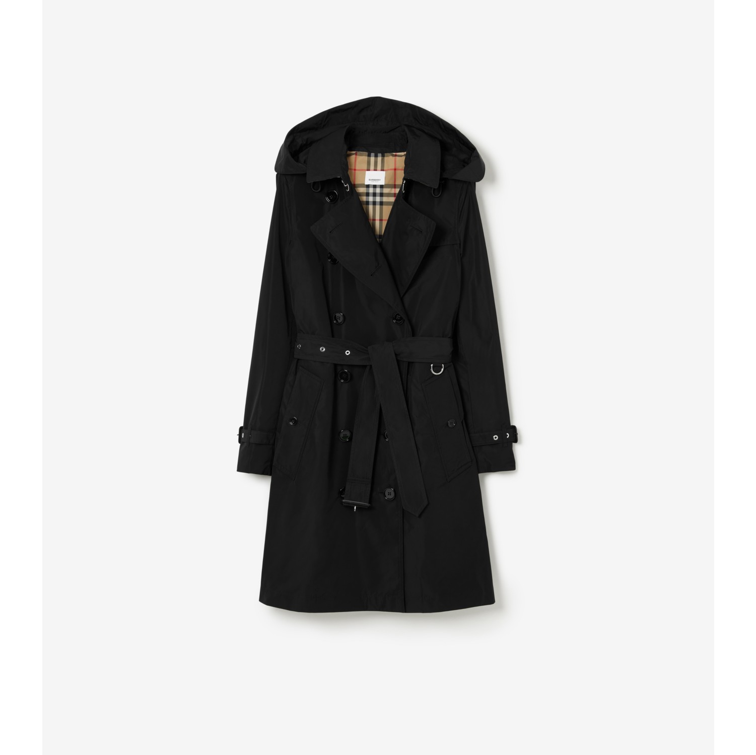 Mid length Taffeta Kensington Trench Coat in Black Women Nylon Burberry Official