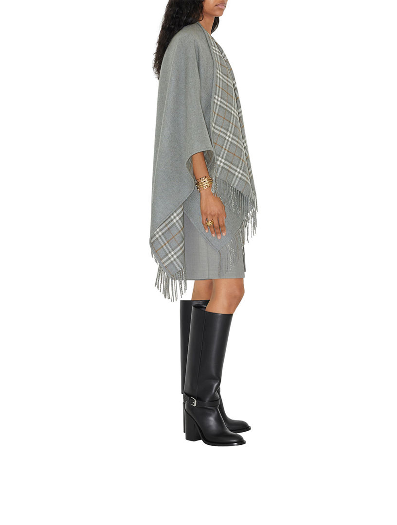 Check Wool Reversible Cape in Grey Women Burberry Official