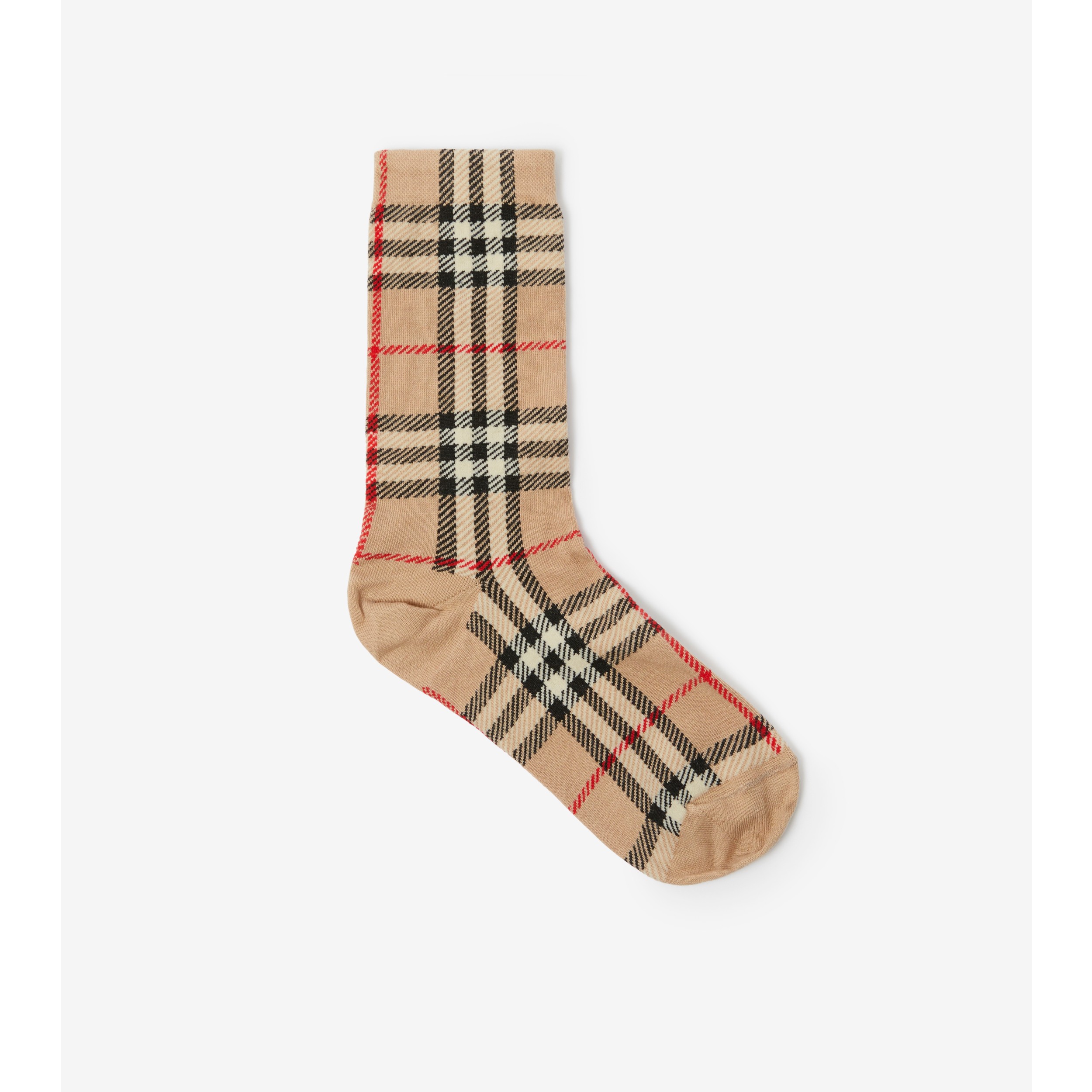 Check Intarsia Technical Stretch Cotton Socks in Archive beige Burberry Official