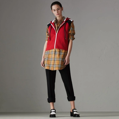 Burberry Stripe Detail Jersey Sleeveless Hoodie In Bright Poppy