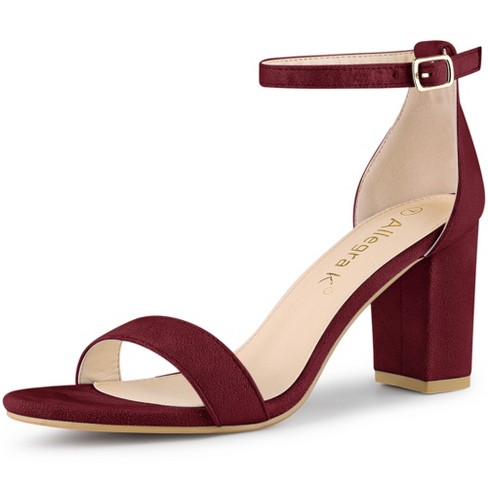 HerStyle Rosemmina Open Toe Ankle Strap Chunky Heel Burgundy