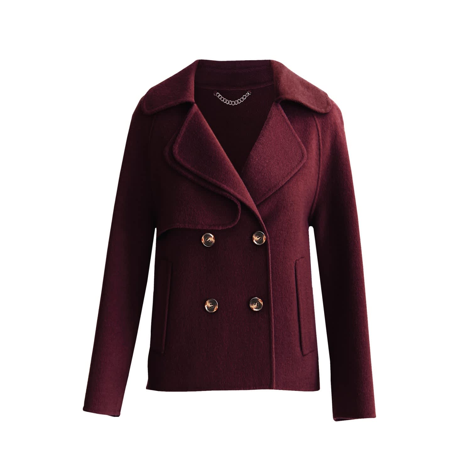 Women Maroon Trench Coat Double Breasted Pocket Pea Coat Women