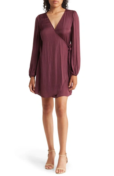 Socialite Satin Long Sleeve Wrap Dress In Burgundy ModeSens