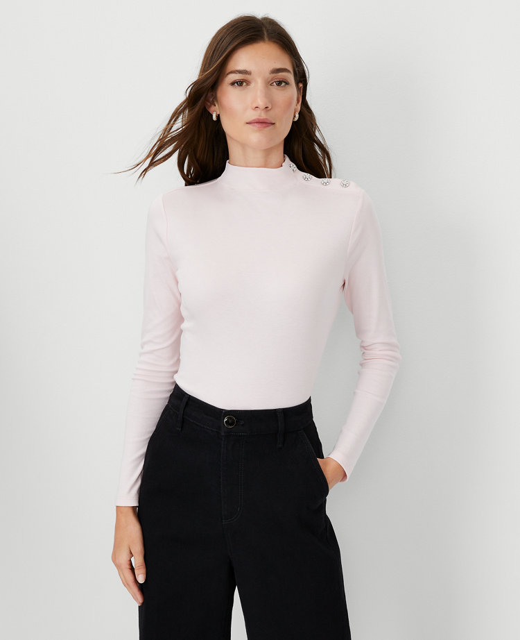Button sleeve turtleneck clearance, Crystal Shoulder Button Turtleneck Top clearance