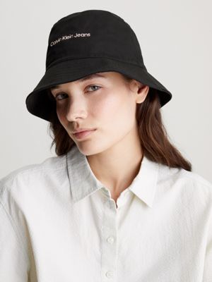 Calvin Klein Jeans cotton logo bucket hat in black BLACK