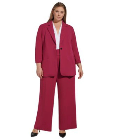 Calvin klein plus size pant suits clearance, Plus Size Scuba crepe One button Ruched sleeve Jacket In Mulberry clearance