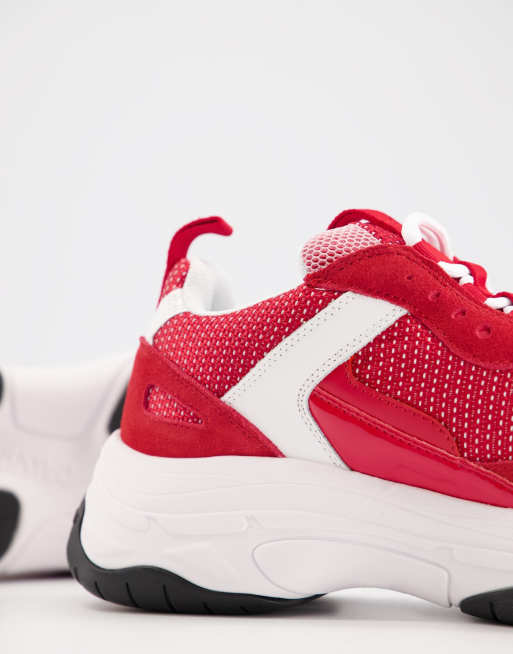 Calvin Klein Jeans marvin chunky trainers in white red mix