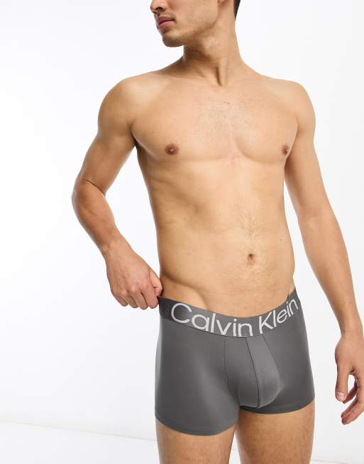 Calvin Klein 3 pack trunks in red black and grey with silver waistband
