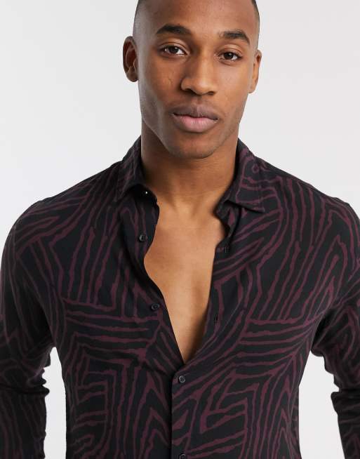 Jack Jones Premium Camicia in viscosa zebrata rosso scuro ASOS