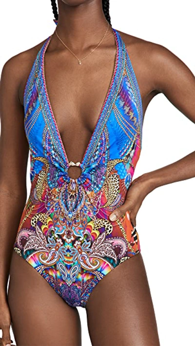 Camilla Ring Detail Plunge One piece Swimsuit In Psychedelica