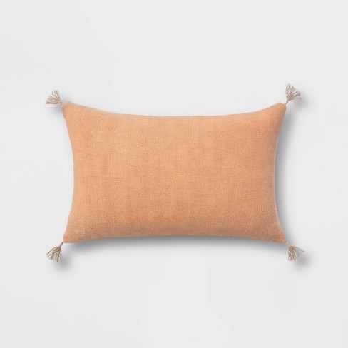 Washed Linen Lumbar Throw Pillow With Tassels Clay Threshold