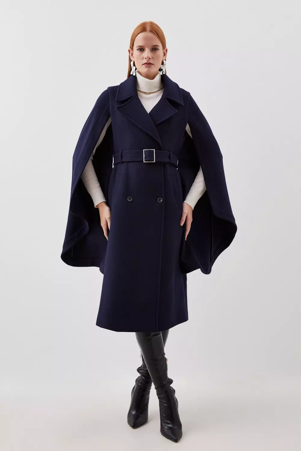 Italian Manteco Wool Blend Cape Sleeve Belted Coat Karen Millen