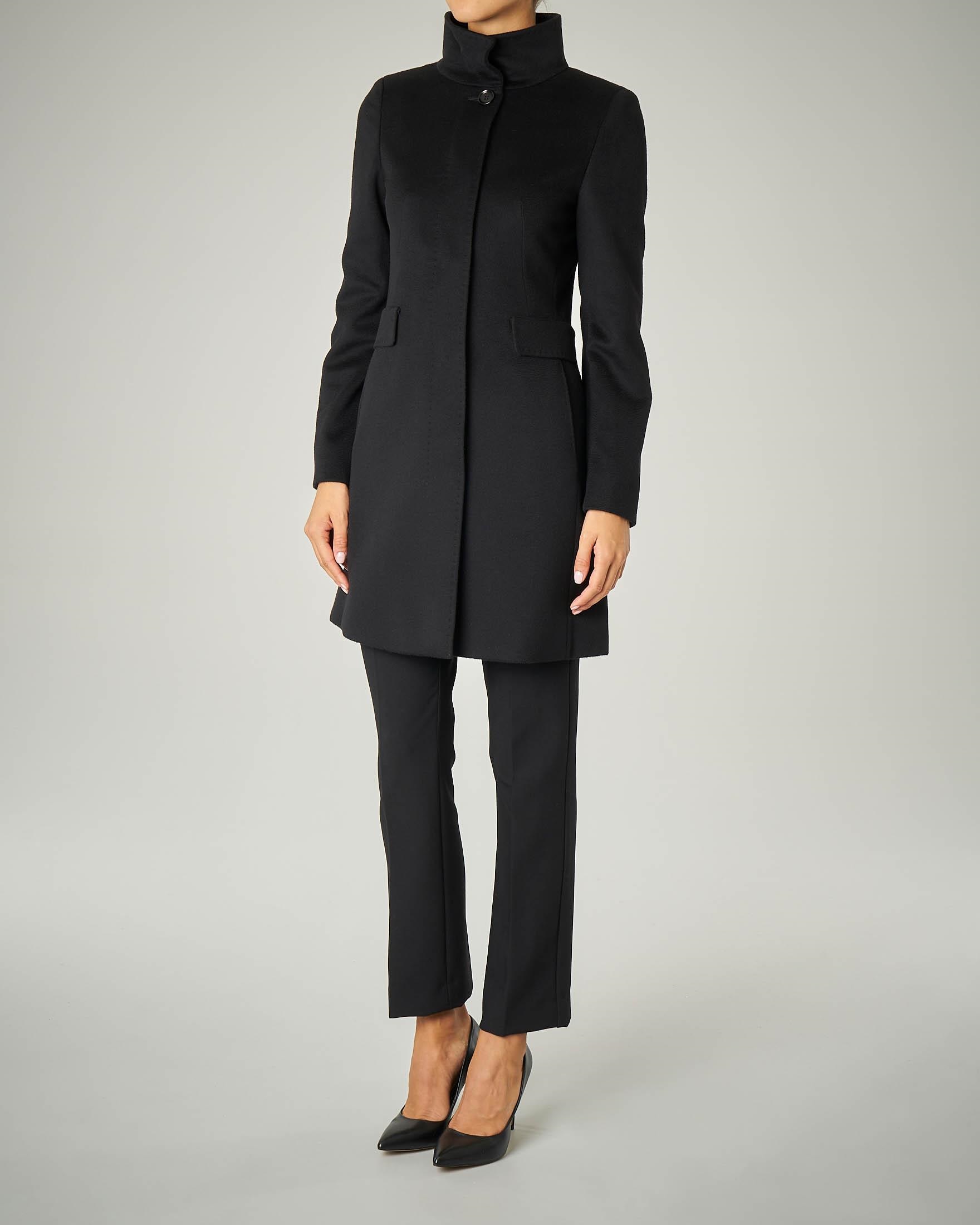 Cappotto nero in misto lana dal taglio maschile leggermente