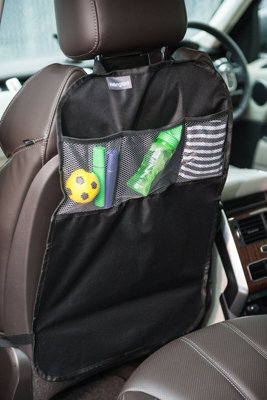 FINEWAY 2 Piece Kick Mat Car Seat Protector Cover 3 Mesh Pockets