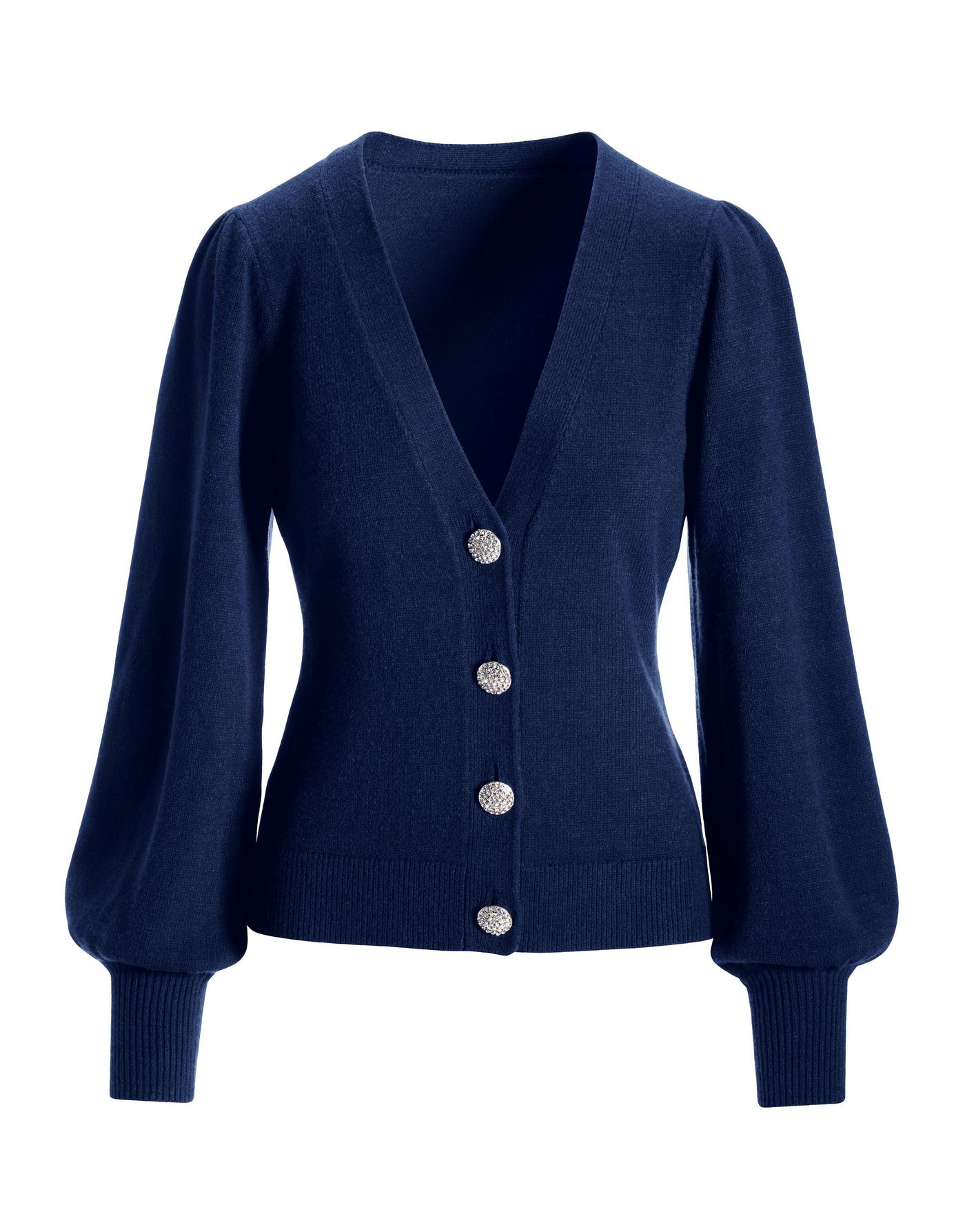Embellished Button Puff Sleeve Cardigan Navy Boston Proper